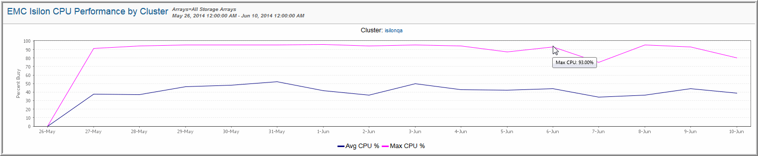 Capacity Manager > Storage Performance > EMC Isilon CPU Performance by Cluster