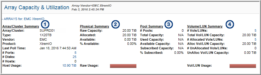 Figure 3.1 Example of an Array Capacity & Utilization Report