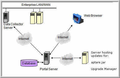 The Data Collector Upgrader provides options to manually or automatically upgrade to the latest Data Collector logic. A regularly scheduled process checks if updates are available. Updates then can be downloaded to the Portal server (see