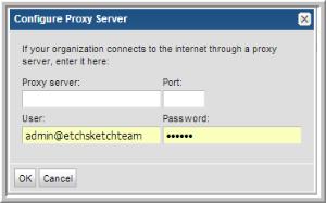 If a proxy server is used to connect to the Internet, click Configure Proxy Server to provide the details in the configuration window.