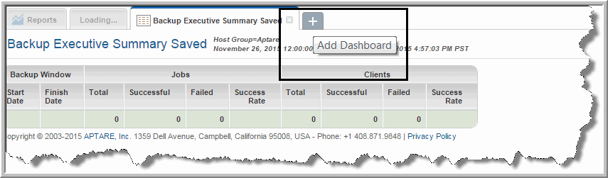 3. Search and generate each report you want to add to your dashboard. Each report will display in a separate tab.