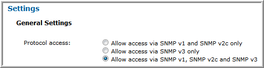 SNMP v1 and v2c only | • Enable access: ![]() • If SNMP v2c is allowed, then the read-only community string must be set. ![]() |