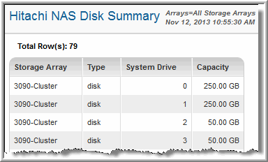 Capacity Manager > Array Capacity & Utilization > Hitachi NAS Disk Summary